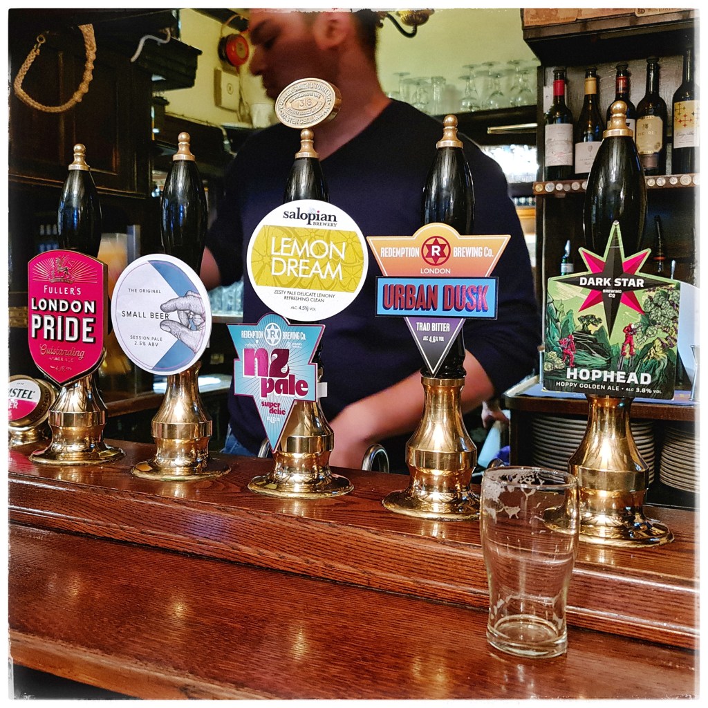 Urban Dusk in Holborn. Ein traditionelles Bitter aus Tottenham, zum Lippenlecken lecker, gefunden und getrunken in einer der besten Locations, die man in London besuchen kann: Ye Olde Mitre (https://www.yeoldemitreholborn.co.uk), versteckt im Hinterhof, zu erreichen nur über zwei enge Gassen. „A wonderful historic London pub set in Ely Court, The Ye Olde Mitre takes traditional pub-keeping seriously.“ Sagt der Inhaber. Das Pub wurde 1546 für die Bediensteten der Bischöfe von Ely erbaute, es ist berühmt für einen Kirschbaum-Stamm, der heute die Fassade stützt und um den angeblich Queen Elizabeth einst mit Sir Christopher Hatton getanzt sei. Ye Olde Mitre ist heute ein Fullers-Pub – aber natürlich gibt es nicht nur Fullers-Bier, sondern, wie in England üblich, diverse andere Sorten, als wir dort waren zum Beispiel das erwähnte Urban Dusk. Wunderbar schlank, crisp, leicht nussig, leicht bitter, ein Hauch Karamell und Kaffee vom Malz, eine Spur Zitrus und Frucht vom Hopfen – eine klare, erdige Farbe und unglaublich leicht trinkbar. Ein absolut sensationelles, und dazu erstklassig gezapftes Ale, von dem man leicht eins nach dem anderen trinken kann. Gebraut hat es die 2010 in London-Tottenham gegründete Redemption Brewing (https://redemptionbrewing.co.uk).